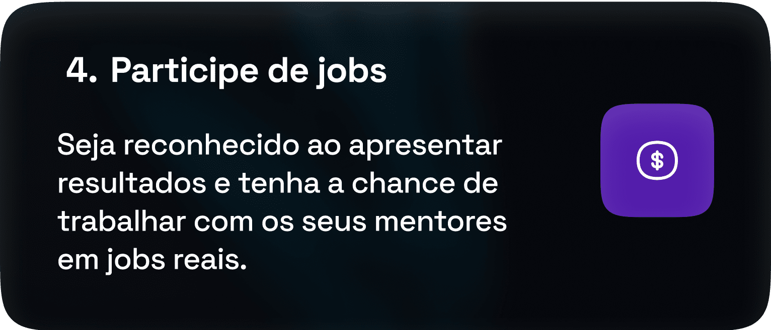 Acesso ao canal Discord e grupos de whatsapp de cada turma para quickaccess ao seu mentor e mentorados, para networking, jobs, refinamento de abilidades e suporte. Algo que não existe em nenhuma comunidade audiovisual.